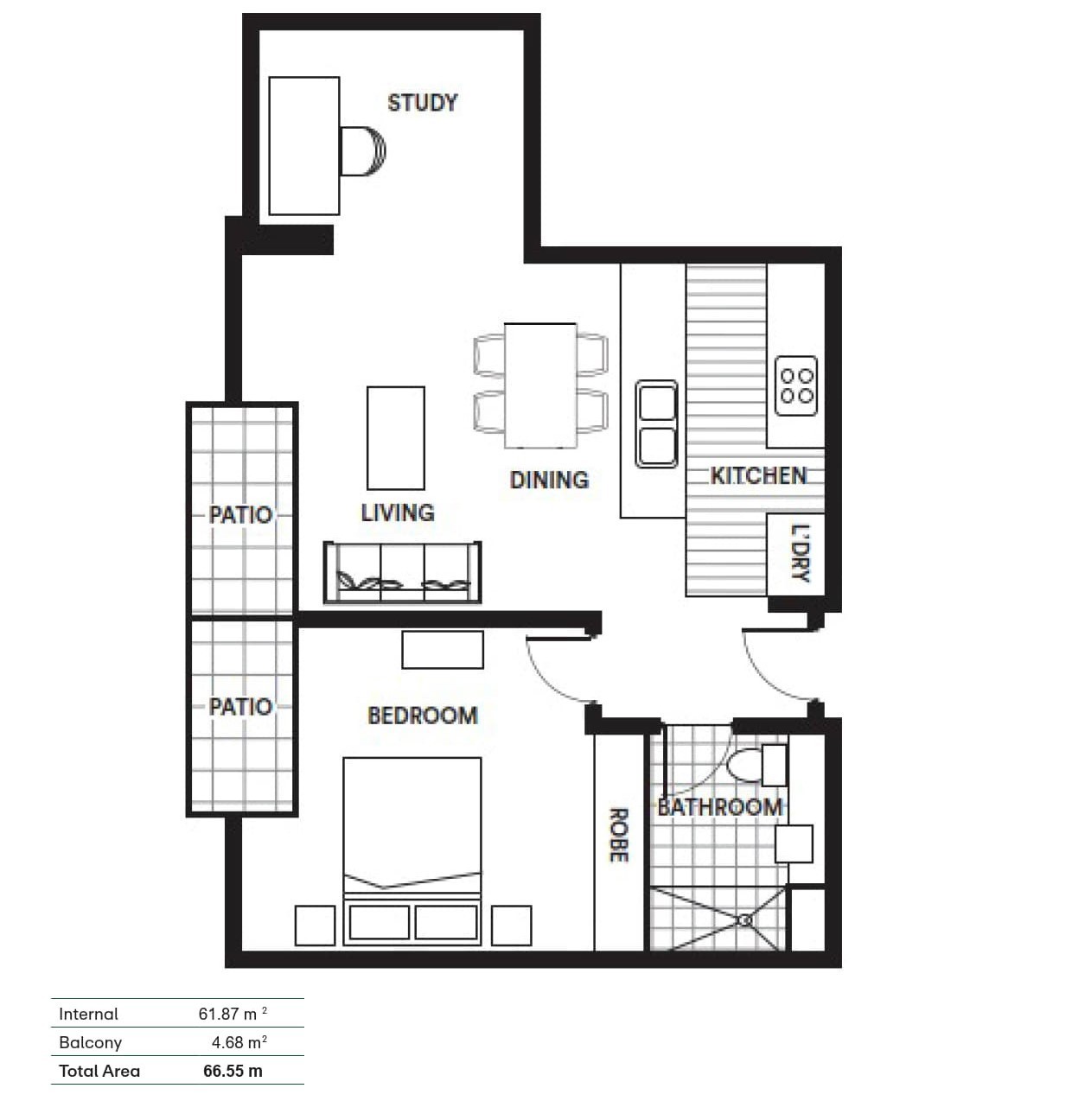 • Spacious one-bedroom plus study apartment