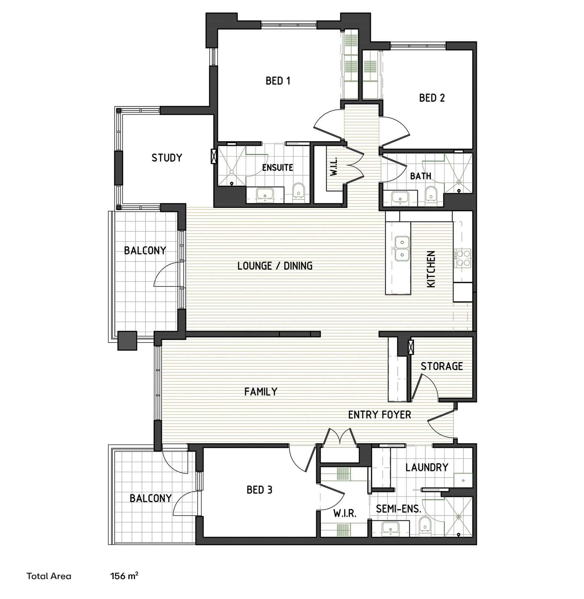 • Spacious Design: Three bedrooms, three bathrooms plus a study.