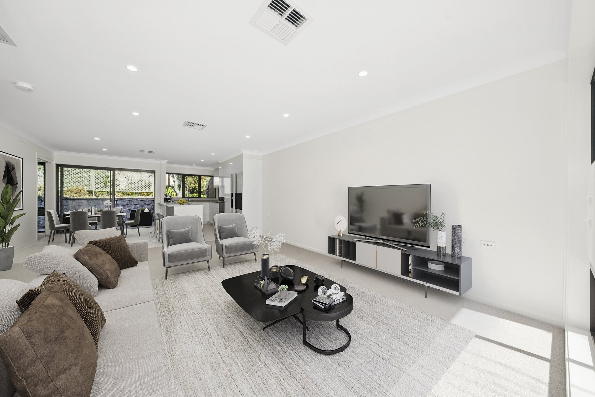 • Light-filled open-plan living with new carpet underfoot