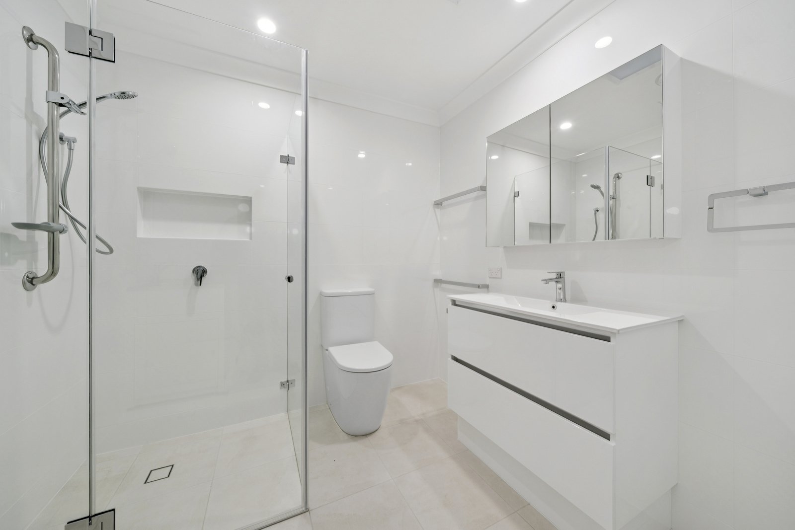 • Contemporary bathroom with walk-in shower and quality finishes