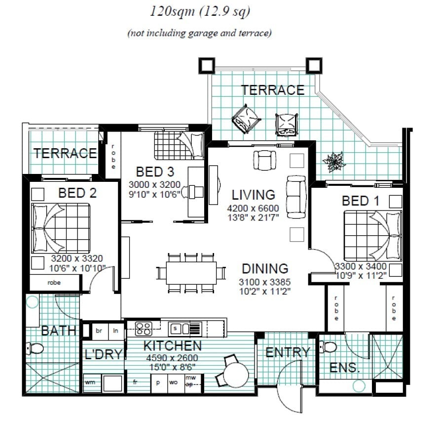 • Spacious living and dining area flows onto a sunlit terrace